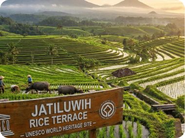 Jatiluwih Rice Terrace (UNESCO): A vast and stunning rice field landscape recognized as a UNESCO World Heritage Site.