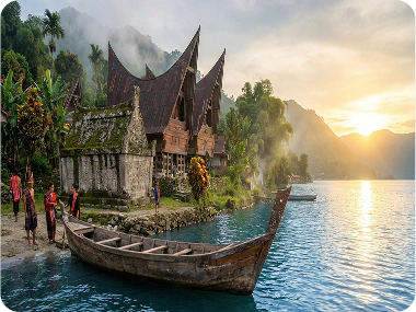 Parapat & Lake Toba: Depart to a charming lakeside town located on the shore of the spectacular Lake Toba (approx. 4 hours’ drive). Along the way, enjoy scenic views of rubber plantations, palm oil estates, rice terraces, and small local towns. A short stop will be made at a local snack shop for refreshments and restrooms.