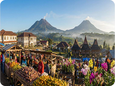 Brastagi: Visit this cool mountain town, nestled between two active volcanoes, and browse the local fruit market.