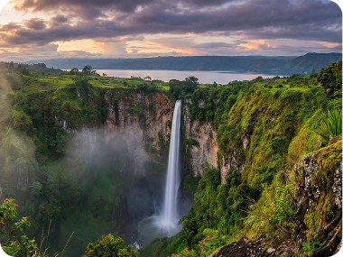 Sipiso-piso Waterfall: Marvel at this dramatic waterfall plunging hundreds of meters into Lake Toba.